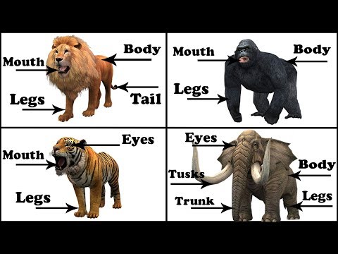 Lion Parts }}- Learn Animals Body Parts Names Elephant, Lion, Tiger For Kids Children | Educational Learning Video.